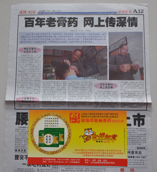 习近平强调“抛弃传统文化等于割断了自己的精神命脉”!《山东省卫生志》《淄博市志》《淄博市医药志》《临淄区卫生志》《临淄区志》民国《临淄县志》等官方正史均有百年赵培印面瘫膏药的历史记载:“赵培印祖上赵天津独熬制吊线风膏,治疗面瘫效果独特,深受病家喜爱,求膏者络绎不绝。